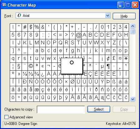 Click Start and choose Programs, Accessories, System Tools, and click Character Map to display the Character MapCharacter Map.
