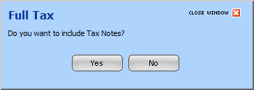Click Yes on the messagemessage asking if you want to include Tax Notes. Each tax number you chose on the Order Home Page displays for you to type relevant notes.