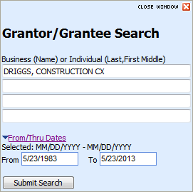 Click Submit Search. See Viewing Grantor/Grantee Search Results for subsequent steps.