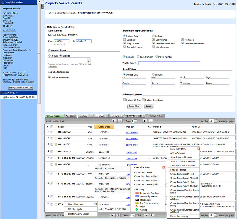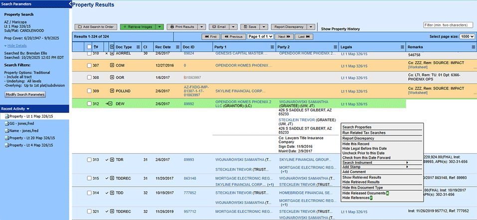 Note that different functions are available depending on whether you ran a search as an order, or simply as a Non-Order Search, and whether (in TP Counties) you chose to display the results in a condensed or expanded format.