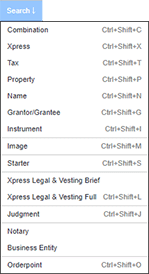 Note: The Fallout menu option only displays if you have access to title units with the Fallout permission. Values by search types are Keyboard Shortcuts. |
