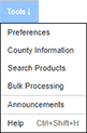 Displaying in the Top Pane is the Menu Bar. The Menu Bar includes menu titles. Some menu titles provide access to drop-down menus that are comprised of a collection of menu items, and some are simply buttons to quickly access the most often used searches. Collectively, you can use menu titles to perform any of the TitlePoint functions.